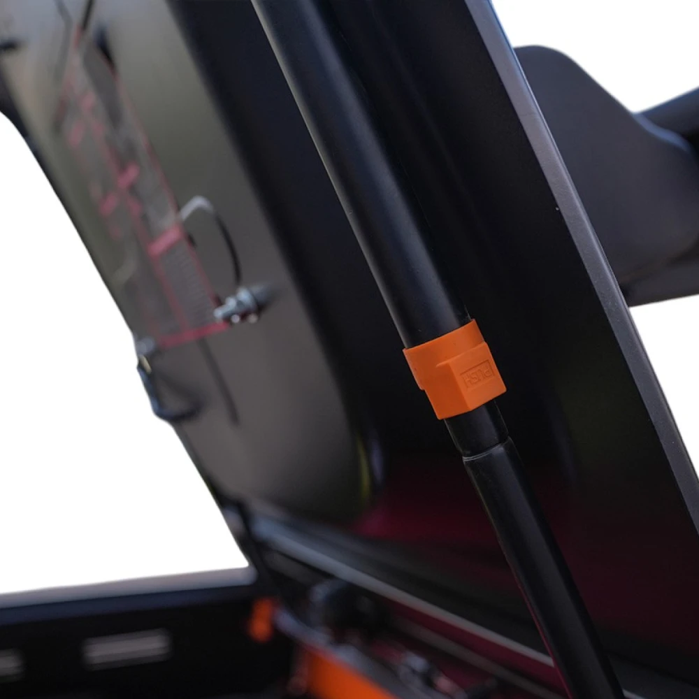 Прочные цельнолитые шины и четырёхколёсное исполнение обеспечивают устойчивость на разных поверхностях. Угол наклона мачты (5° вперёд и 10° назад) упрощает работу с грузами, а поперечная регулировка вил от 100 до 1040 мм делает технику универсальной для разных типов паллет.