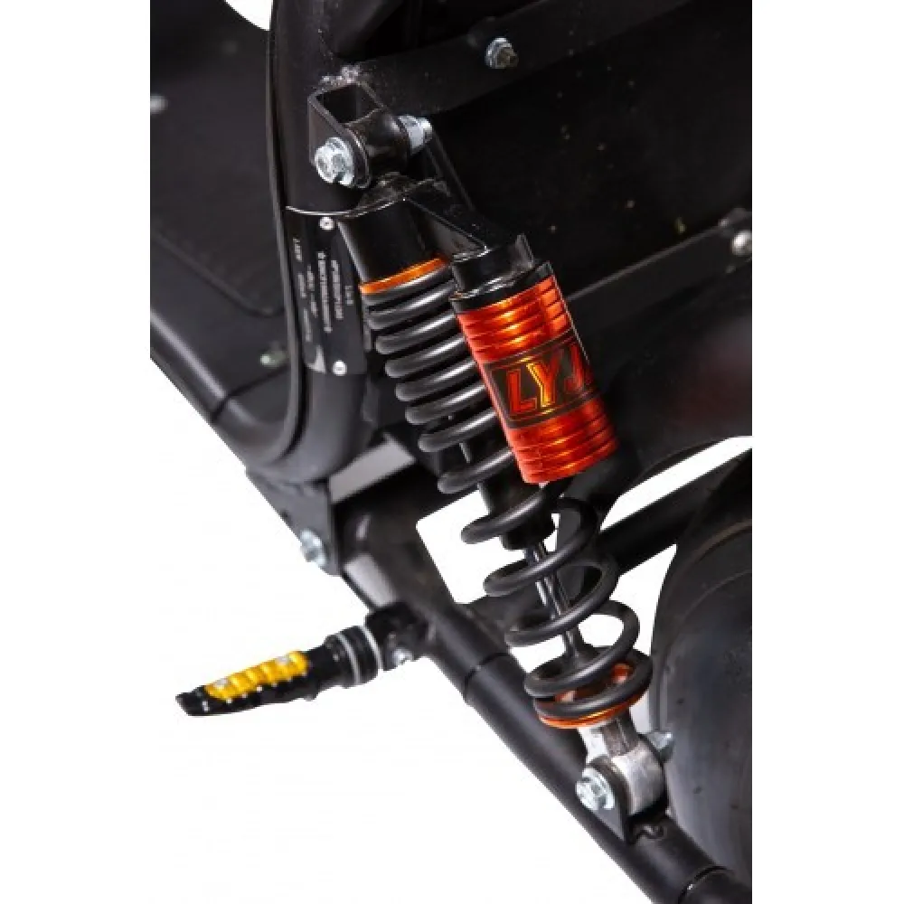 Citycoco X11 Pro Max имеет задний привод, мощность двигателя 2000 Вт, в комплектации агрегата аккумулятор емкостью 20 А*ч, с возможностью установки дополнительной батареи. По желанию можно приобрести второй аккумулятор, тогда значительно добавится время в пути. Электроскутер развивает максимальную скорость около 60 км/ч, можно уверенно чувствовать себя в потоке транспорта. Тормозная система дисковая и гидравлическая для полной безопасности.