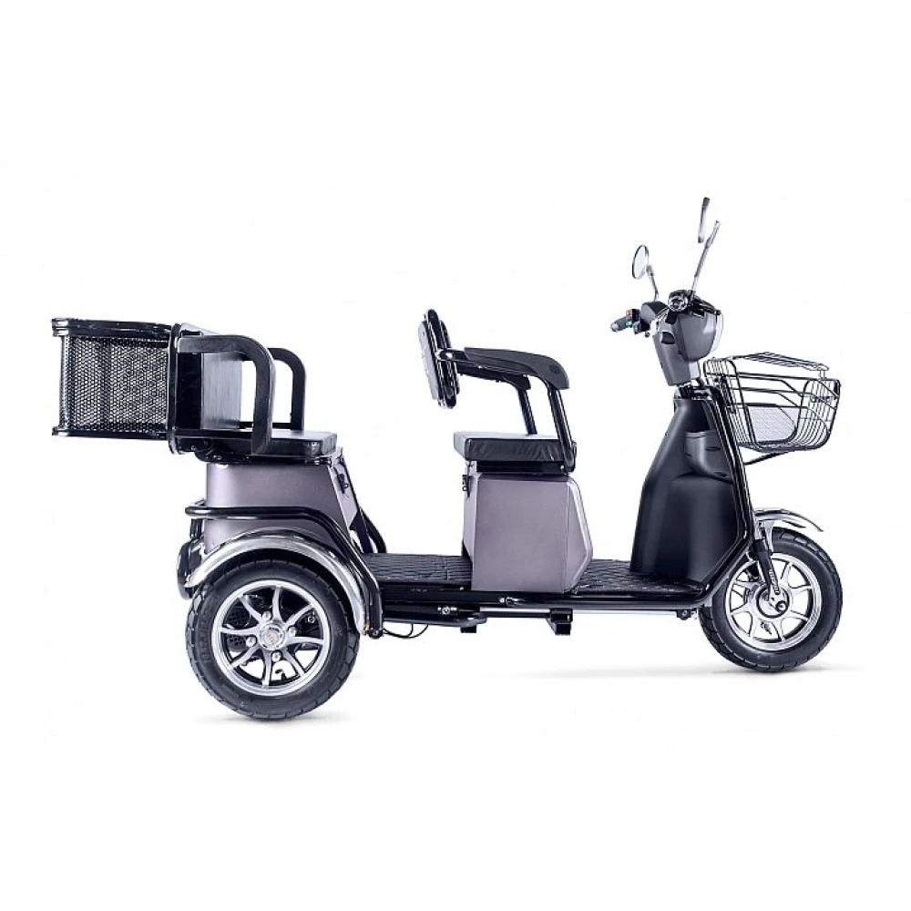 Колесная часть – устойчивая, рассчитана на всесезонье. Маневренность и безопасность езды проверена неоднократным тестированием производителя. Если для вас комфорт и удобство занимают лидирующие позиции, предлагаем заказать именно эту модель трицикла.