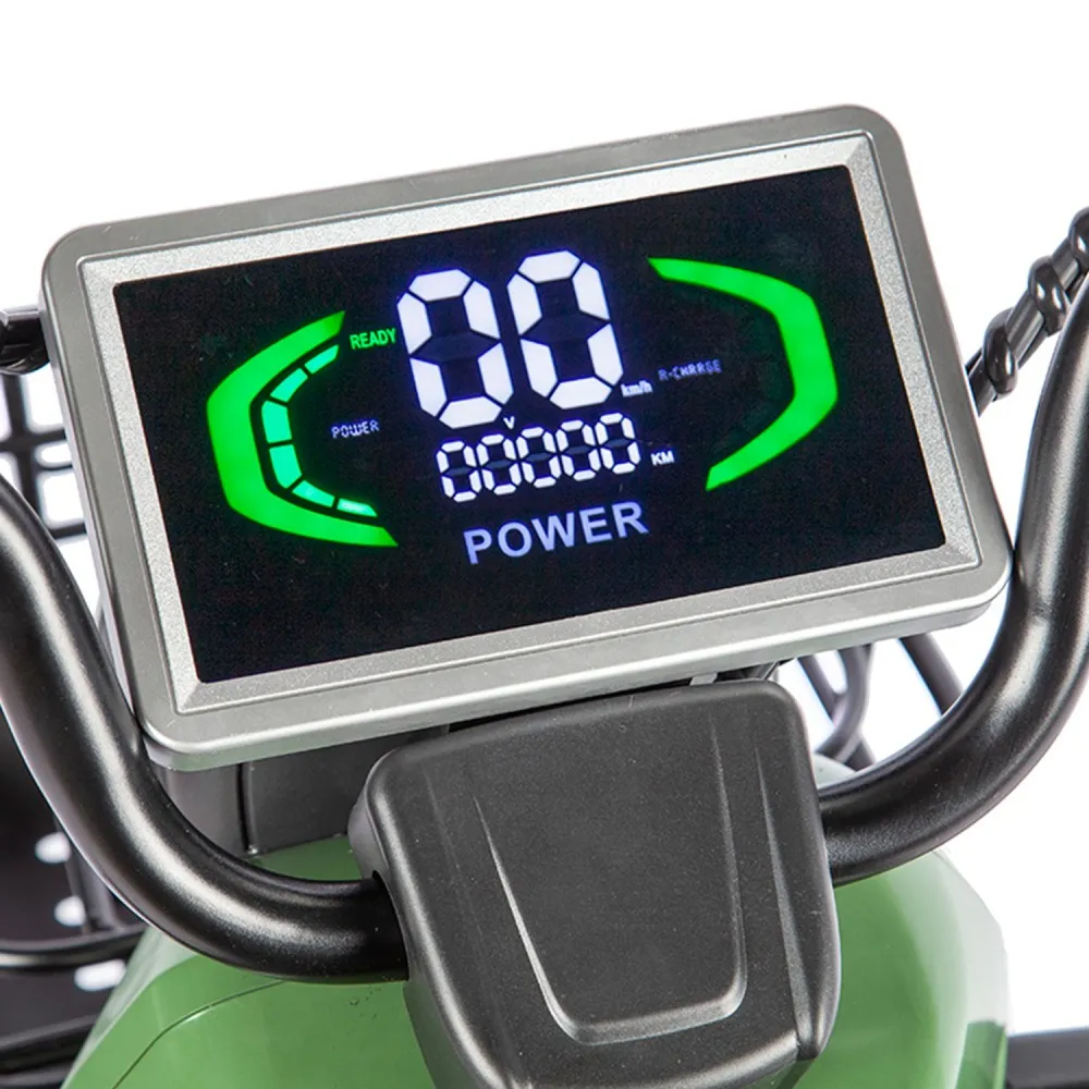 Электротрицикл Rutrike Топик – всесезонная модель тс стала лидером продаж этого сезона. Появление техники вызвало восторг у начинающих и продвинутых райдеров. Технические характеристики совершенствованы по максимуму, не вызывают проблем с эксплуатацией. Купить трицикл выгодно, без наценок предлагает наша компания. Технические характеристики тс (мощность двигателя 800 Вт) позволяют развивать скорость до 25 км/час и преодолевать 30 км пути. Модель удобна для активного время провождения на свежем воздухе. Техника оснащена комфортными сиденьями. Первое, мягкое и удобное предназначено для водителя, второе – для пассажиров. Размеры сиденья позволяют разместить 2 человека одновременно. В нижней части размещена широкая платформа для ног. Прорезиненная поверхность исключает соскальзывание стоп, повышает степень безопасности пасажиров. Наличие передней светодиодной фары разрешает эксплуатацию в вечернее время и непогоду. Особенности модели сделали технику популярной в гостиничном бизнесе и частном секторе. Красивый привлекательный трицикл заметен на фоне других участников движения. Купить или заказать технику сейчас можно связавшись с менеджером интернет-магазина в телефонном или онлайн-режиме.