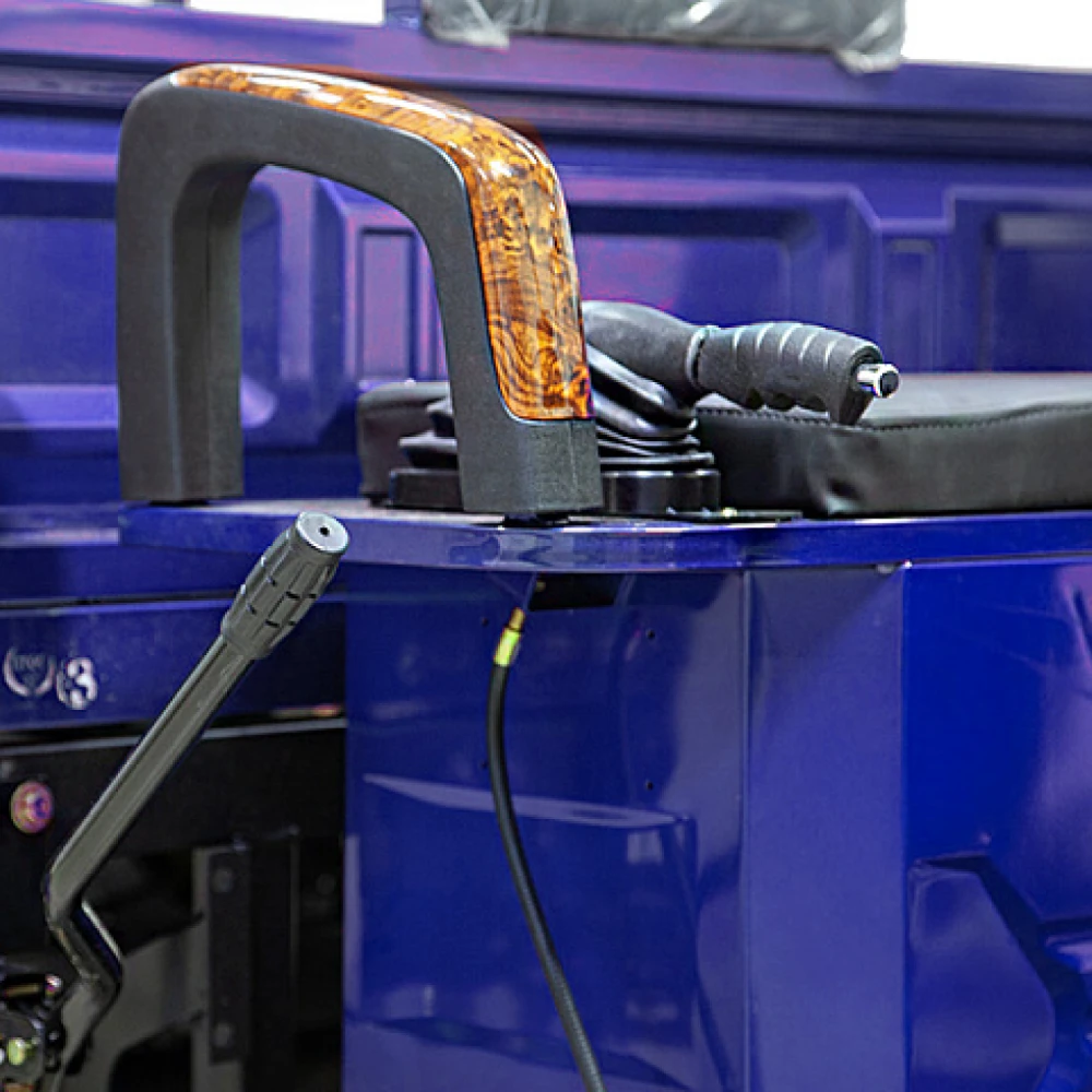 Мощность двигателя составляет 1500 Вт, в сочетании с гелевой тяговой батареей модель способна развивать скорость до 25 км/час и преодолевать 80 км пути. Модель оснащена вместительным кузовом, рассчитанным на грузоподъемность 1т. Управлять элеткротрициклом просто. Всесезонная техника оснащена зеркалом заднего вида, мощной светодиодной фарой, удобным комфортным сиденьем. При эксплуатации транспорта производитель предупреждает об осторожности нахождения под кузовом в поднятом состоянии. Фиксация кузова на предусмотрена в положении подъема.
