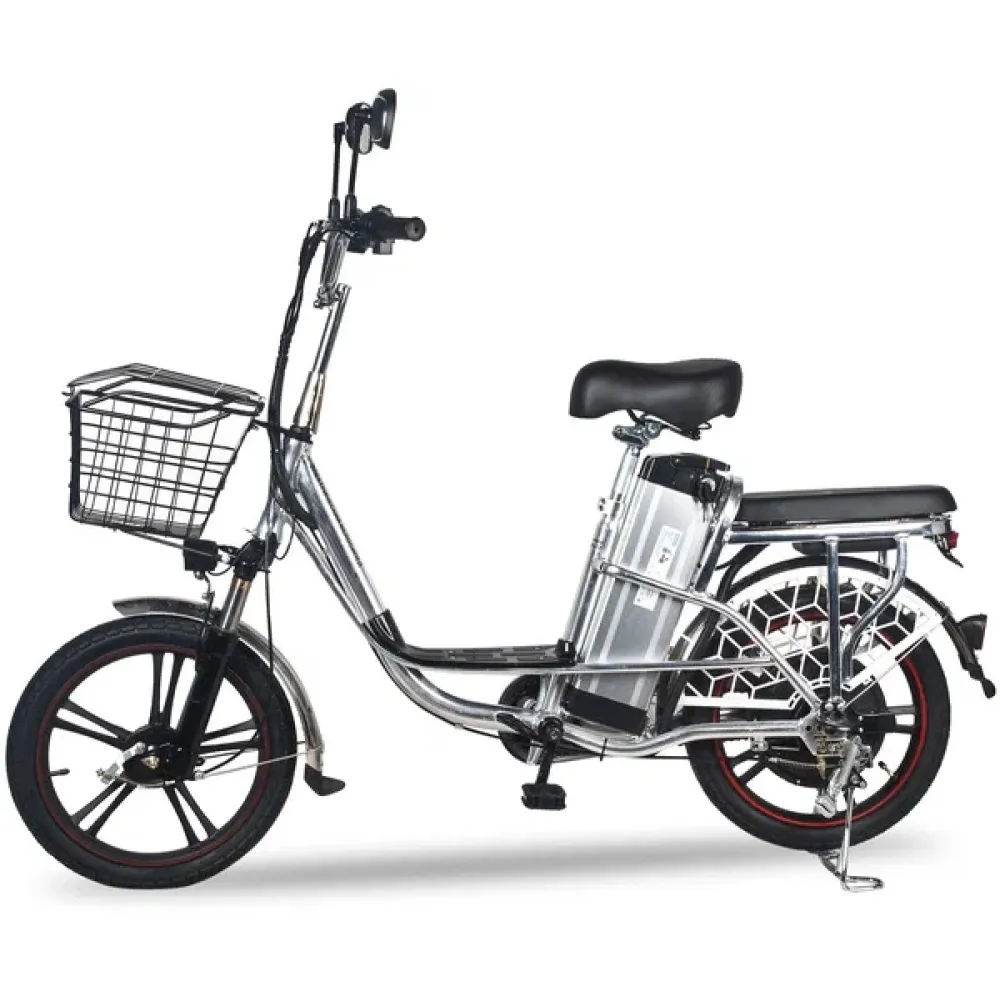 Электровелосипед изготовлен из сверхпрочного алюминия, не теряющего первоначальных характеристик при соблюдении требований производителя. Оснащена мотором мощностью 500 Вт, который в сочетании с емкой АКБ способен развивать скорость до 20-50 км/час и преодолевать до 80 км пути. Гидравлическая тормозная система, профессионализм райдера и надежно сцепляемые с грунтом внедорожные колеса обеспечивают безопасность движения райдера.
