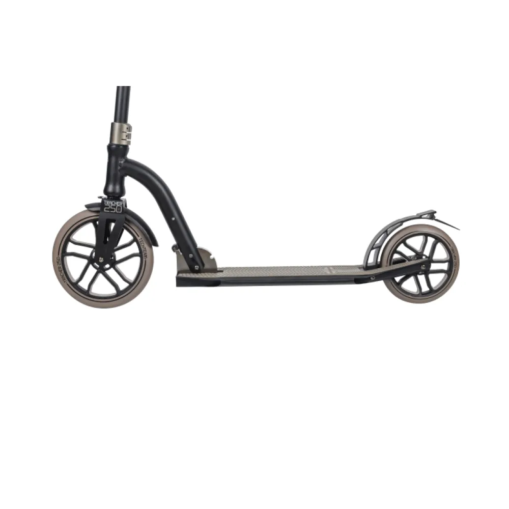 Самокат TRACKER 250 grey  хит продаж прошедшего сезона. В 2021 году по-прежнему занимает лидирующие позиции в сегменте продаж. Визуально ознакомиться с дизайном и техническими особенностями можно благодаря онлайн-каталогу. Купить самокат по приемлемой стоимости предлагает наш магазин. Сотрудничество с нами – гарантия покупки надежной техники с длительным сроком службы. При необходимости покупатель может воспользоваться услугами бесплатной консультации и другими преимуществами.